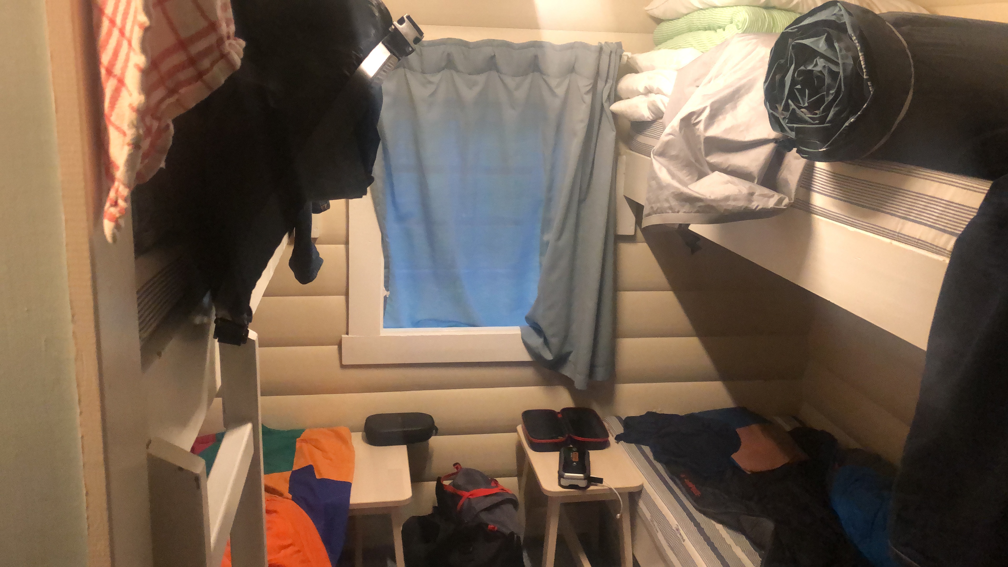 Wenig später haben wir uns auch von den sanitären Anlagen überzeugt. Sauber und in ausreichender Zahl vorhanden. Auch die Hütte ist in Ordnung. Minimalistisch, aber das war ja zu erwarten. Dafür mit super Aussicht auf den Fjord. Ab nun waren wir uns ganz sicher, dass die Jenigen, die sich negativ über den Platz geäußert haben, entweder realitätsfremd und/ oder wo anders waren oder einfach nur einen Nagel im Kopp haben. Für mich jedenfalls sind diese Google Bewertungen gestorben. Ein Mal ausprobiert, nicht zu gebrauchen. Lieber selber sich ein Bild machen.
