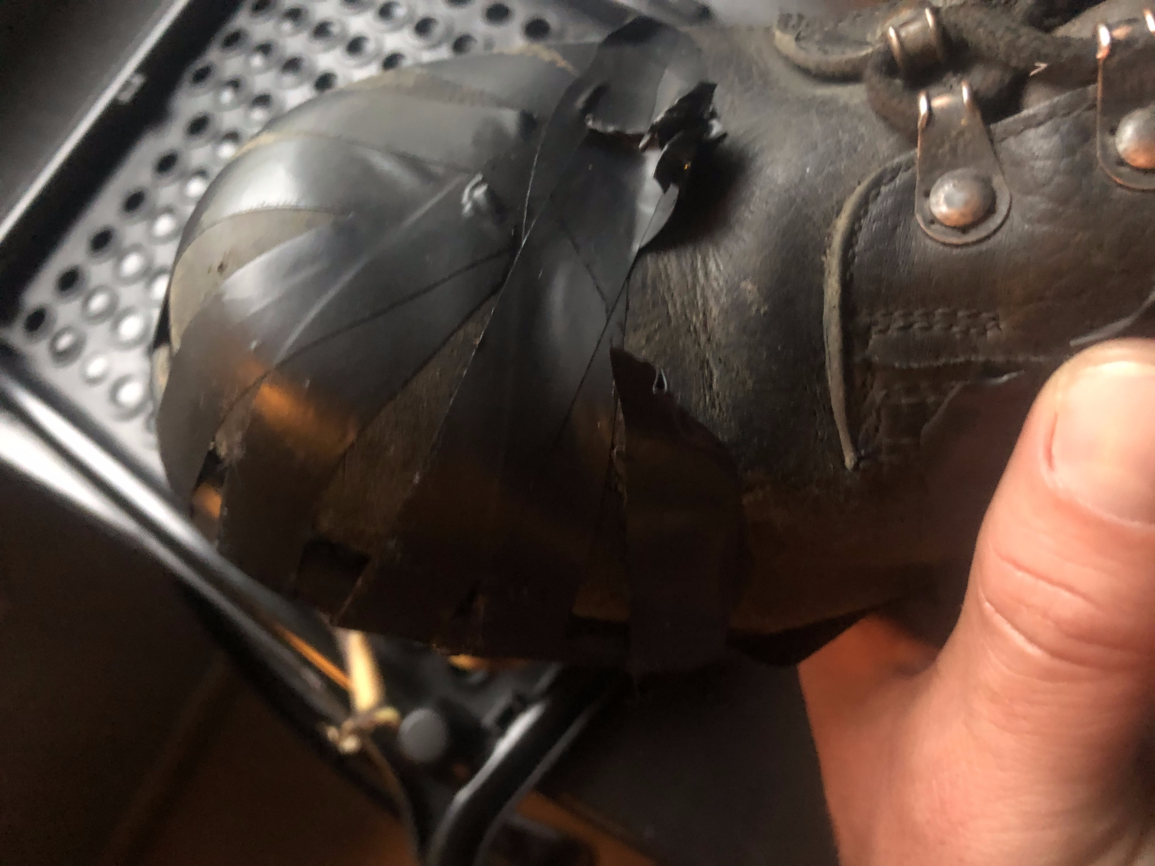 Wie sich herausstellte war der linke Sturzbügel, an dem der Seitenständer befestigt ist, nicht mehr der Belastung gewachsen und eine Schweißnaht ist gerissen. Nichts wildes, aber bis dato haben die beiden ältesten Mitglieder des Team Lars die beste Figur gemacht und keine nennenswerte Ausfallerscheinungen gehabt. Ich ja sowieso und meine GS mit ihren 36 Jahren auch nicht. Wobei, meine Springerstiefel könnten in etwa auch so alt sein, Papa?